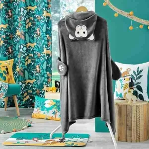 Douceur d’interieur Plaid Con Cappuccio 100 X 120 Cm Flanella Unita Ricamata Singe