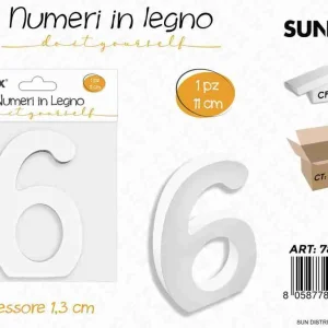 Numero 6 In Legno 11*1.3cm