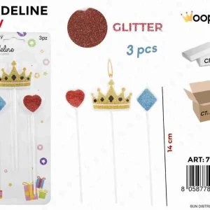 Candeline Glitter Corona Ass. 3pcs 14cm