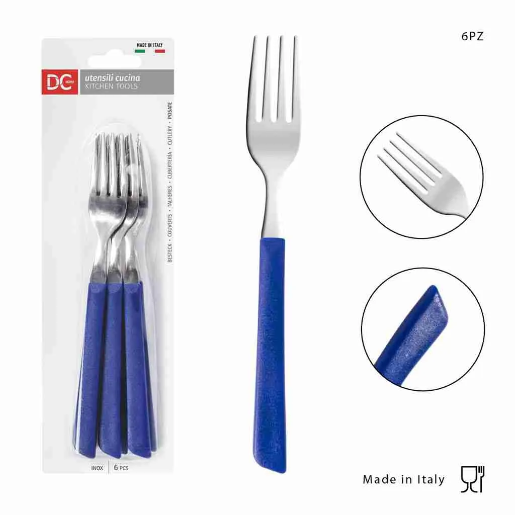 Dc Casa Forchetta Tavola Inox 6pz Blu