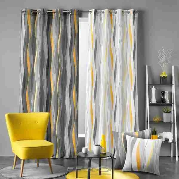 Douceur d’interieur Tenda Con Occhielli 140 X 280 Cm Poliestere Stampato Ondulys Giallo/Antracite