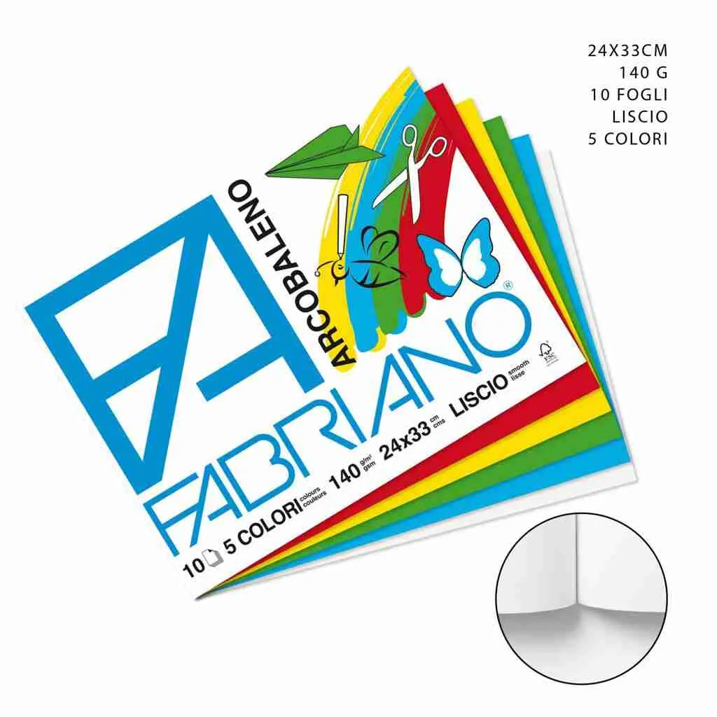Fabriano Disegno Arcobaleno 24×33 10f 5col.Liscio