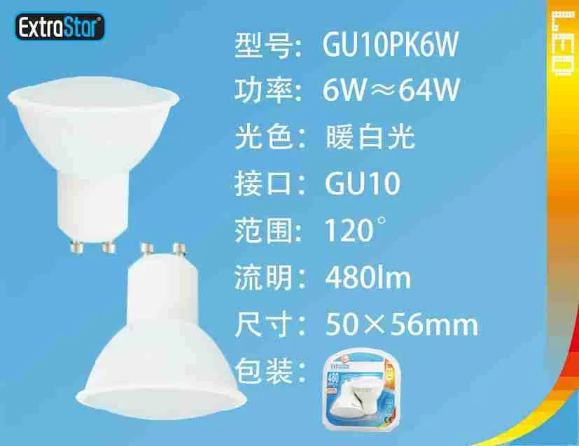 Lampadina Led Gu10 6w 480lm 3000k 2pz