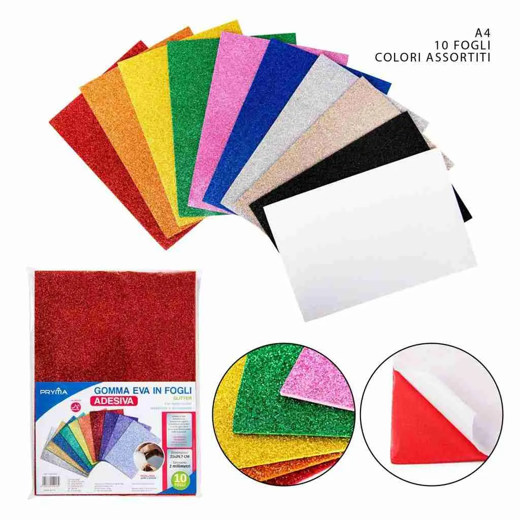 Pryma Foglio Gomma Eva Glitt Ades.A4 2mm 264g 10pz