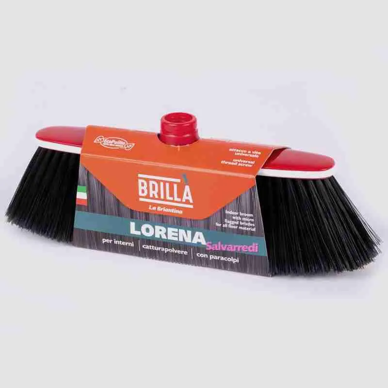 Scopa Lorena salvarredi è una scopa per interni con bordo paracolpi in morbida gomma. Grazie alle setole sottili micropiumate è adatta alla pulizia di tutti i pavimenti di casa, anche i più delicati. Attacco del manico universale. Composizione: setole 100% PET riciclato, assicella 100% moplen, bordo in gomma.
